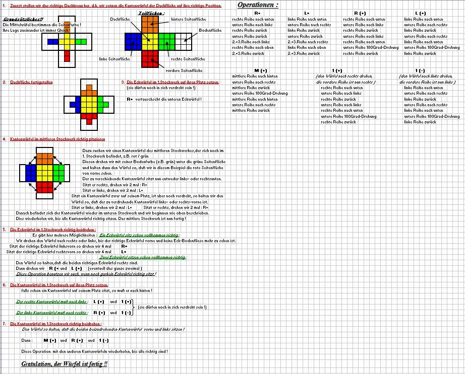 Da kaum jemand die komplizierte Lösung verstand, habe ich mir eine eigene, leicht verständliche Anleitung geschrieben. Damit ist das Drehen des Würfels keine Zauberei mehr und ist mir sehr hilfreich, wenn mich gelegentlich der Virus wieder mal packt.